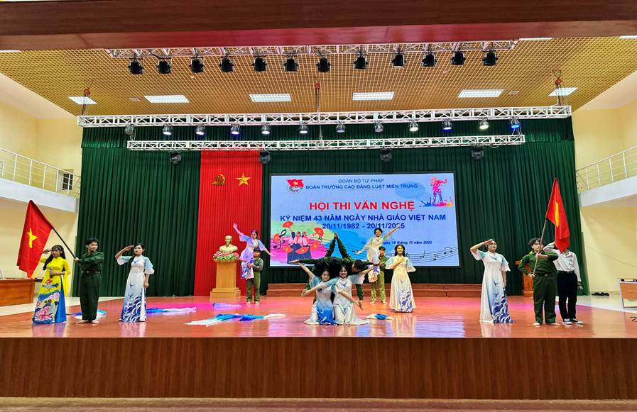 Hội thi văn nghệ chào mừng Ngày Nhà giáo Việt Nam 20/11 là dịp để học sinh, sinh viên gửi gắm tình cảm tri ân sâu sắc đến các thầy cô, đồng thời góp phần xây dựng môi trường giáo dục năng động, gắn kết và giàu bản sắc tại Trường Cao đẳng Luật Miền Trung.